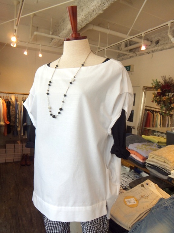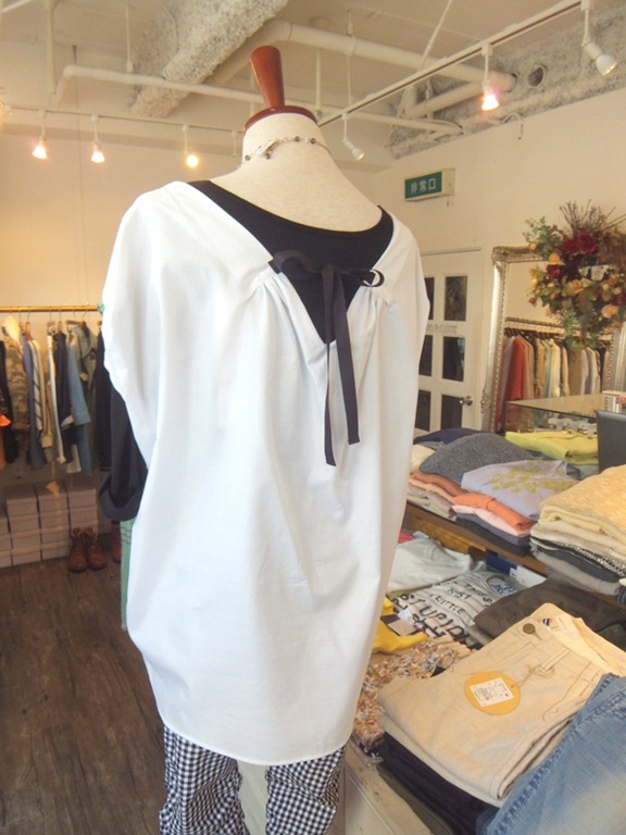 デザイン白ブラウス入荷しました~♪ 白ブラウスは春先たくさん見るけど、他には無いデザイン性のあるものがいい! という方必見です。 先日ご紹介したブルーストライプのブラウスの色違いで背中にリボンが付いています 後ろ身頃が長めなので、しっかりとヒップを隠してくれるグッドなデザイン♪ ボトムのチェックパンツもお奨めですよ~。 デザインブラウス ¥14,700 チェックパンツ ¥5,775 2013年4月17日