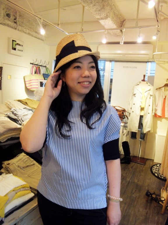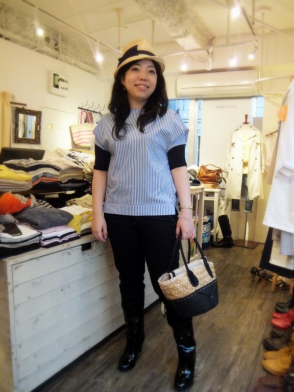 ビッグリボン中折れ帽子とブラックコーディネート♪ とっても素敵な中折れ帽子とブルーストライプシャツのご紹介! 要所要所にブラックが効いててかっこいい♪ 爽やかブルーとクールブラックの絶妙コーディネート。。 ぜひお試しあれ~~!! 中折れ帽子 ¥5,145 ブルーストライプシャツ ¥14,700 カゴバッグ ¥12,600 レインブーツ ¥12,600 2013年4月20日