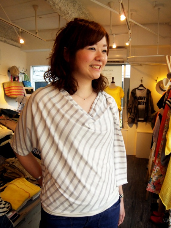 変形ボーダーカットソー♪ 変形の素敵なカットソーが入荷しました! 丈が短めで、コンパクトめなカットソー。ボーダーだけど、 斜めボーダーなのでスッキリ見えて一枚でもデザイン性があるので オシャレ感たっぷり。 マキシ丈に合わせても素敵ですよん。 お色は2色です。 ボーダーカットソー ¥7,245 コメントは受け付けていません。