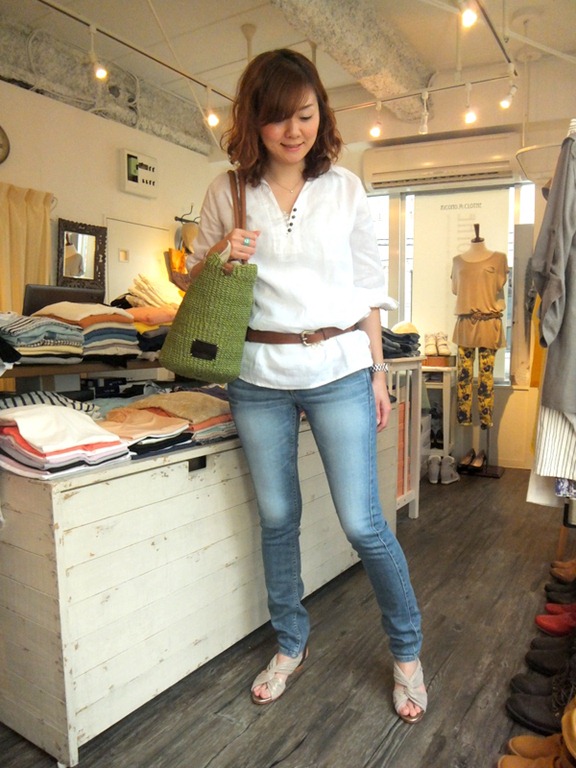 美脚デニム&リネンブラウス