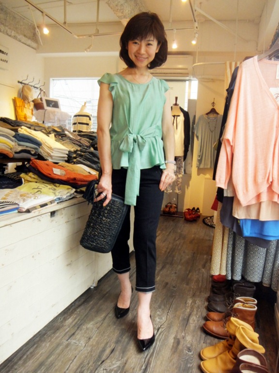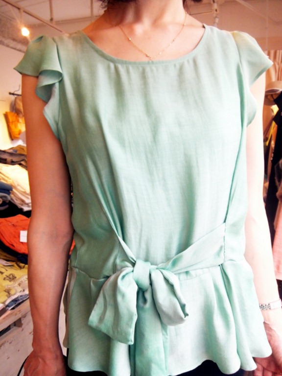 大人のグリーンブラウス♪ グリーンの大人系ブラウスが入荷して来ました~♪ 前リボンが印象的で素敵!濃い目のボトムとパンプスで 大人の雰囲気漂います。 ヒラっとしたフレンチスリーブで上品さが際立ちますよ~~。 お早めに~! ブラウス ¥7,245 パンツ ¥11,550 2013年6月1日
