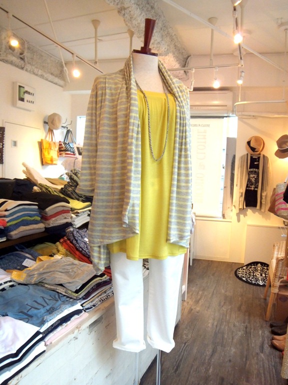 ボーダーカーディガンとプルオーバー 梅雨 ですね~ やっと梅雨らしくなった感じでしょうか? こんなお天気には フレッシュなイメージのレモンイエローのコーディネイトで爽やかに乗り切りましょう。 本日はデコルテが綺麗に見えるスクエアのカットソーとイエロー×ライトグレーのカーディガンにしてみました。 白パンで爽やかに着こなしてみてくださいね。 カットソー ¥6,195 カーディガン ¥10,290 2013年6月11日