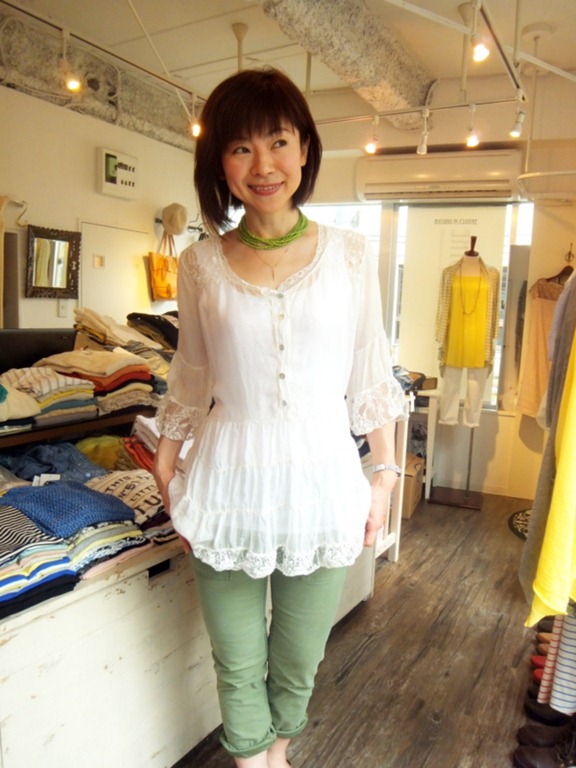 イタリアインポート レースブラウス♪ 繊細な使いが素敵なウォシャブルシルクのブラウスです。 フリルでも子供っぽくならないのは、その上質なシルクとレースのなせる業!! そうそう見つからないアイテムなので 気になる方はお早めにチェックして下さいね~~~ ブラウス ¥16,800 2013年6月17日