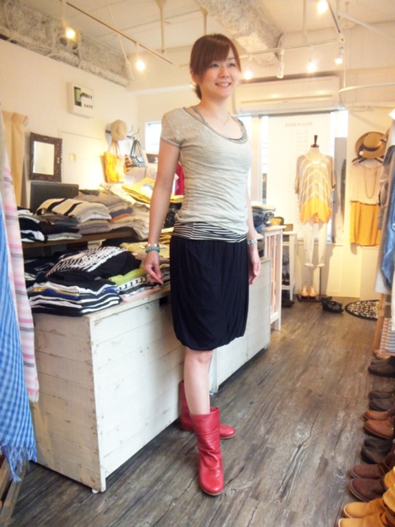 インポートカットソーとボーダータンク♪ カッティングが綺麗でスッキリ見えるインポートカットソーとボーダータンクの ご紹介です♪ 素材感も柔らかく、襟あきが大きめでフェミニンなカットソー。 柔らかなカットソーの素材感とインナーのボーダーがベストマッチなコーディネートです! 赤いブーツもいい感じ~~♪♪ インポートカットソー ¥8,295 → ¥5,810 ボーダータンク ¥4,095 2013年6月25日