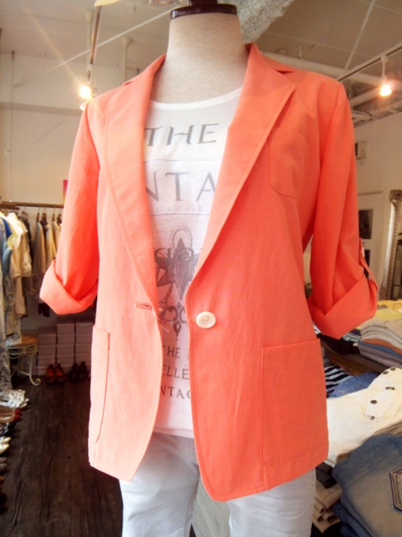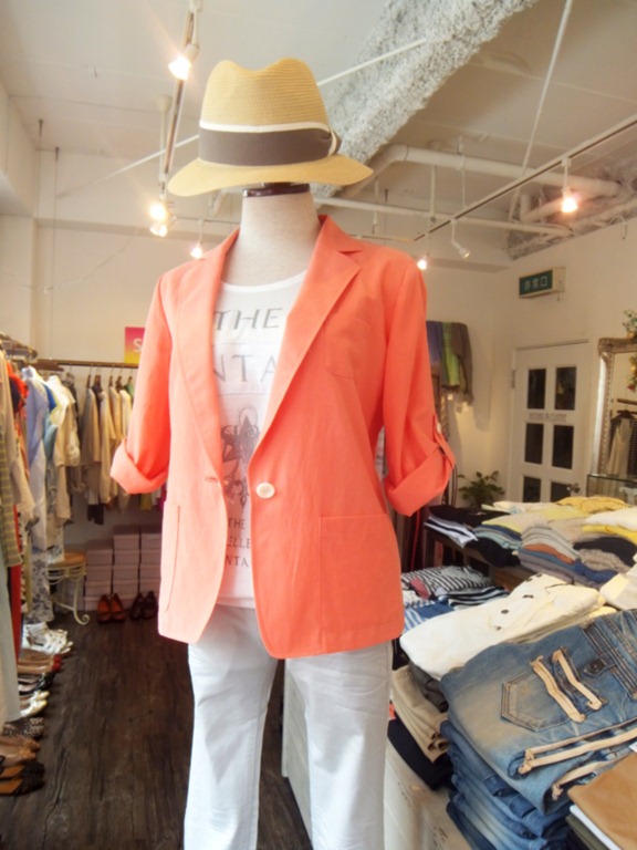 カラージャケットのコーディネイト♪ ショート丈でパンツに良し、スカートに良し、袖もロールアップできまーす 色味も綺麗でお肌の色もワントーン明るく映りますよ カットソー ¥5、810 ジャケット ¥14,550 パンツ ¥14,595 2013年7月1日