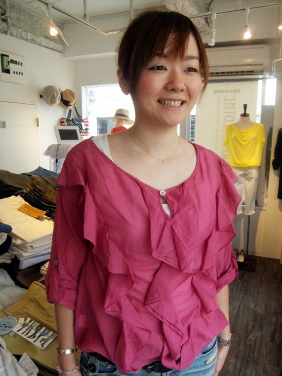 夏も使える秋色インポートブラウス入荷しました 透け感のあるコットンシルク素材でフリルが素敵 カジュアルなデニムとの相性抜群♪ 七分袖なので冷房対策にもなりますよ~!! ブラウス ¥12,600 2013年7月24日