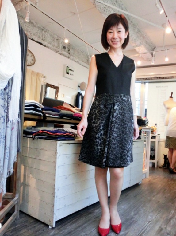 スカートが少し変形のデザインになっていて、着丈短かすぎないので