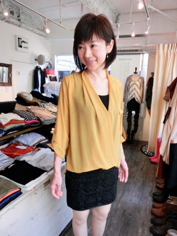 持ってくると素敵♪ブラウスはマスタード、ワイン、ネイビーの3色です。