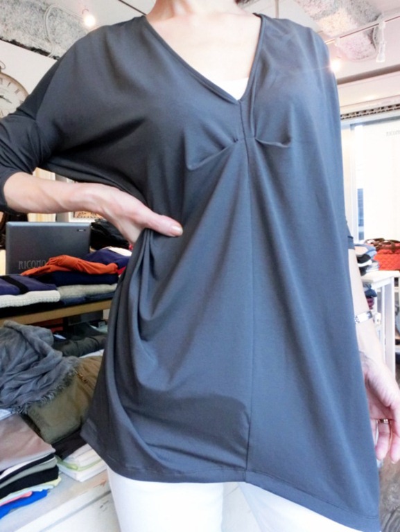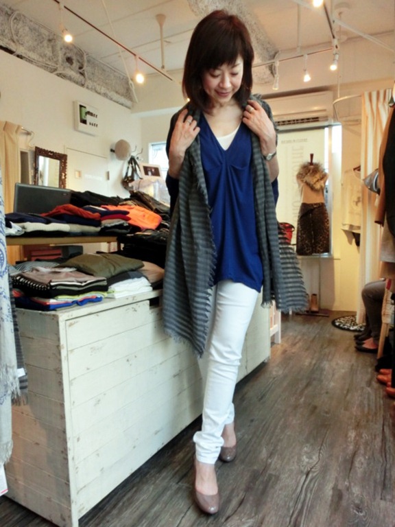 新作デザインチュニック♪入荷しました!! 深めのVネックが女らしい 着痩せデザインチュニックが入荷致しました!! サラサラの着心地で、とっても爽やか~。 白パンで爽やかにコーディネートすると素敵で~す♪ お色はロイヤルブルーとグレーの2色です。 デザインチュニック ¥9,345 ストール ¥12,600 バッグ ¥20,790 2013年9月14日