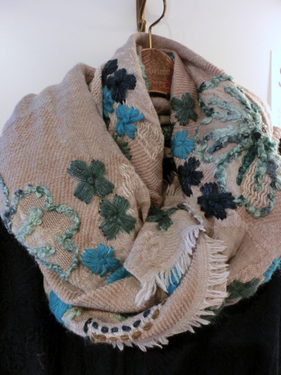 刺繍ストール入荷しました~♪ ストールフェアー真っ只中。またまた素敵なストールが入荷してきました♪ インドの手刺繍のストールは、オリジナリティ溢れる飽きのこないストール。。 ウール80%ナイロン20% 上質で肌触りが良いですよ~♪ ストール¥12,600 2013年10月24日