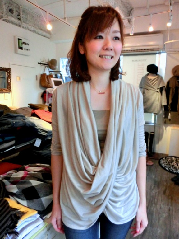 使い方は簡単!秋色ストールと重ねて少しねじって巻いてあげればオッケー!!