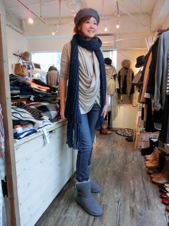 ムートンブーツと合わせて外しているところも素敵です♪