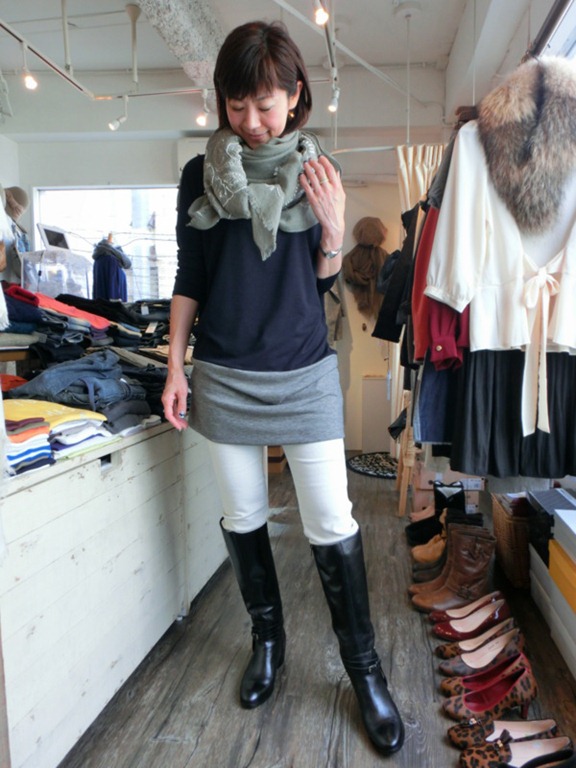 あわせているのは新作で入ってきたバイカラーのチュニック。少し短めに着て