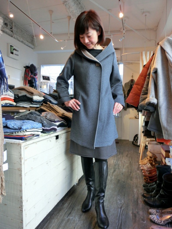 配色のフード付きコート♪ とろみのあるフード付きコートのご紹介です!! 裏地と表地が配色になっていて、フードの内側からチラッと見えるのが とてもオシャレ♪ ゴワゴワしない生地なので高級感漂うコートで~す! クリスマス時期にお奨めのコートですよん。 コート ¥37,800 2013年12月6日