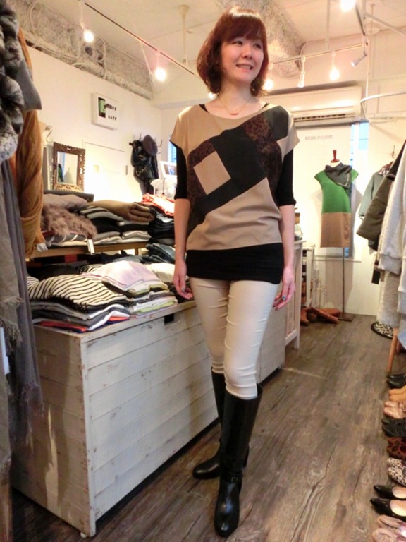 アイボリーのレギパンとデザインカットソー♪ スッキリ見えるレギパンと柄が素敵なカットソーが新入荷しました~! 要所要所でブラックを効かせているコーディネートで大人かっこ良い色合わせが 素敵!! 新入荷のファーベストを合わせてもオシャレ~♪ 履いてないように柔らかいパンツはぜひご試着して体感して下さい! お早めに~ デザインカットソー ¥9,345 レギパン ¥9,345 ファーベスト ¥18,900 ブーツ ¥24,150 2013年12月10日