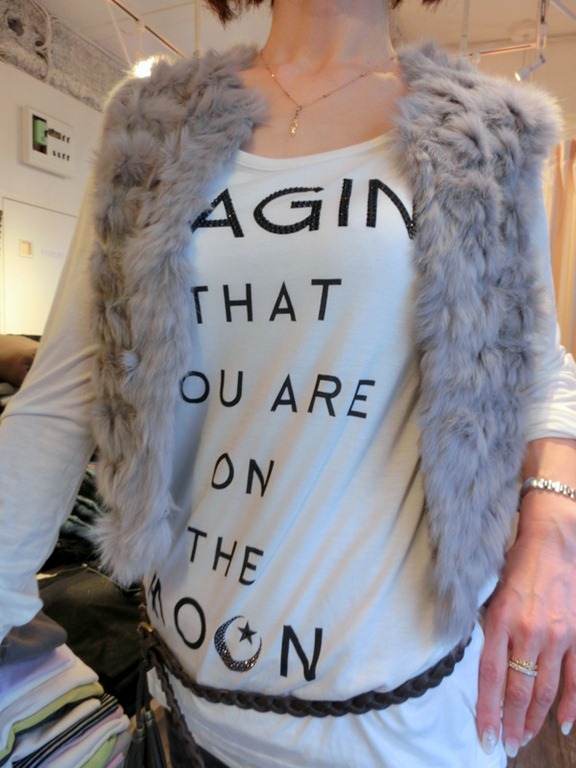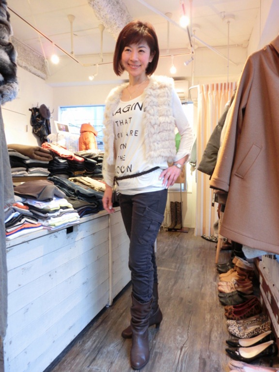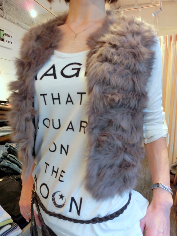 ラビットファーベストのコーディネート♪ 柔らかいラビットのファーベストが入荷しました~♪ カジュアルなTシャツからフェミニンなワンピースにも合わせやすいファーベスト! 肌触りもとっても良いですよ~! ファッションのアクセントにぜひ取り入れてみてくださいな~♪ お色は3色 アイボリー、アイスグレー、モカブラウンです。 ラビットファーベスト ¥18,900 2013年12月11日