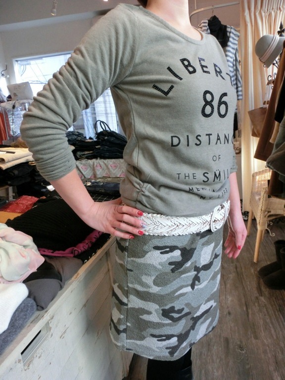 英字ニットソーと迷彩スカート♪ この時期人気の英字ニットソーと迷彩スカートのご紹介です♪ 胸元にポイントのある英字ニットソーはスタイルアップに見せてくれる 優れものです!そして暖かいのが嬉しい♪ 迷彩スカートもハードすぎない迷彩でいろいろなコーディネートで 活躍しそう。。まだまだしばらく寒いこの時期を素敵なお洋服で 乗り切りましょう♪ 英字ニットソー SALE ¥5,070 迷彩スカート ¥8,925 コメントは受け付けていません。