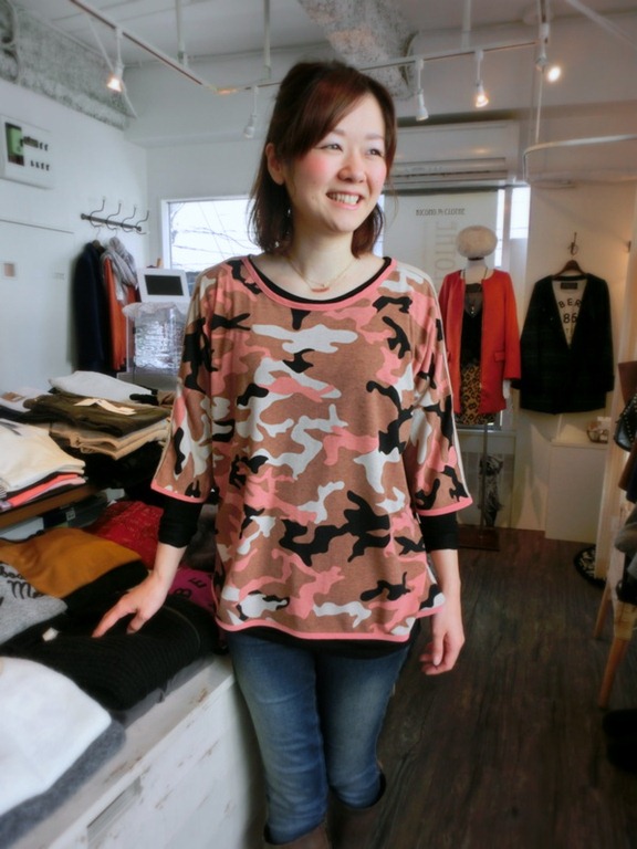 キレイ色の迷彩カットソー♪ 綺麗なお色の迷彩カットソーが入荷して来ました~♪ 強すぎない迷彩なので、フェミニンにも可愛らしくも着れます! 迷彩柄は取り入れたいけど、着崩しすぎてしまっても 戦いに行くモード全開で可愛らしさがなくなってしまいますが、 キレイ色を取り入れると柔らかくなりますよ~♪ うま~く今年のトレンドを取り入れてみて下さ~い! 迷彩カットソー ¥6,825 2014年2月5日