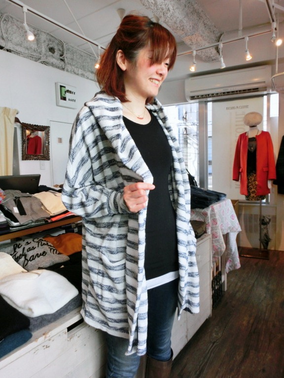 今の時期にはニットカーデやジャケットを上に羽織ると春を意識した
