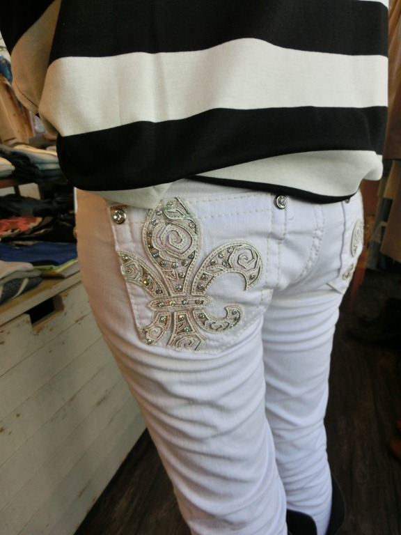 ボーダーカットソーと白デニム♪ アメリカンブランドのインポートデニム、ミスミーの今期の白はかなりクール!! 控えめなレザーの刺繍モチーフで ありきたりな白パンツとは雲泥の差、、、、、、 ピチピチしない、履き易い、可愛いの3拍子です♪ なかなか見つからないパンツです ぜひ お試しあれ~ デザインデニム 白 ¥17,745 2014年3月9日
