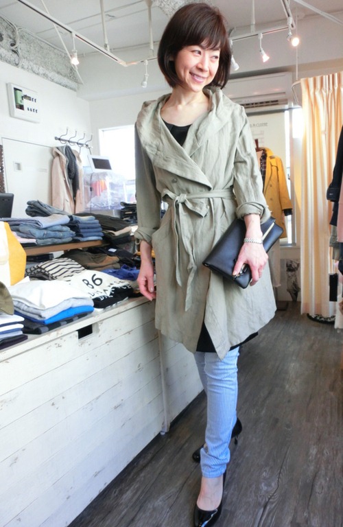 ニュアンスカラーのリネンコート しっかり カッチリのトレンチじゃなくて、パリジェンヌみたいなこなれたコートが良いなぁ~ そんな貴女にこちらのリネンのコートはいかがでしょうか? 初夏のパーティにも ワンピースに羽織ればグッとクールな感じに引き締まります 青山あたりのセレクトで見たら かるーく7万何がし、、、、、なんて値段で売ってそう そんな雰囲気です あまりの人気に残り僅かですが 気になる方はお早めに。 リネントレンチコート ¥18,690 2014年3月17日
