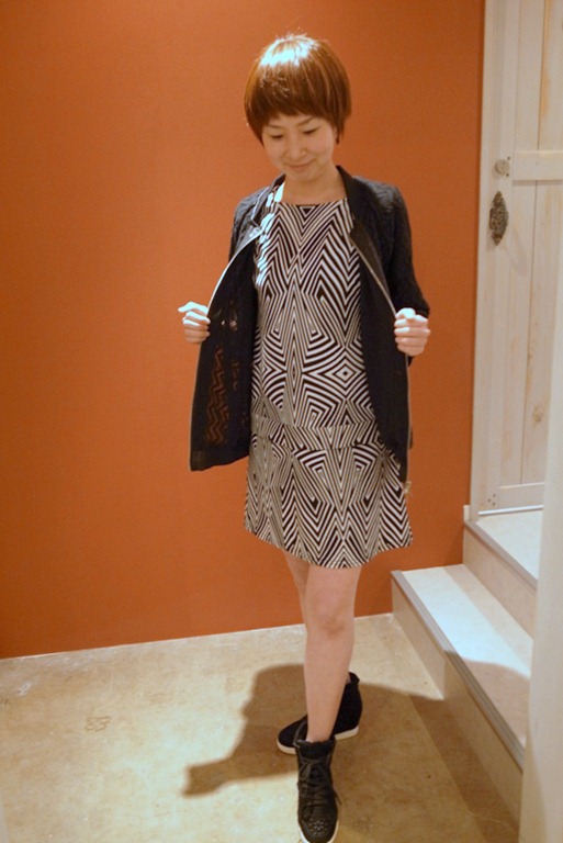 さて、本日は迷彩のワンピースにショートジャケットの、イケてる女コーディネートをご提案です。