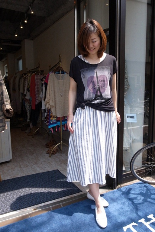 重さを感じない軽いマキシワンピースって、なかなか無いので、こちらのワンピースは着心地もプリントもバッチリの優秀な一枚です! マキシワンピースには短い丈のトップスで脚長効果を狙いましょう!