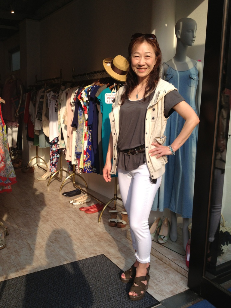 25 May, 2014 20:38 皆様今晩はですぅ 今日、都内は夏日となって、自由が丘のお祭りは沢山の人出で賑わいました。 本日はお客様の葛田様に、白パンツで、クールなスタイリングにトライして頂きました。 カーキのシンプルなTシャツに、アイボリーのフード付きベストがとってもお似合いです。 いつもとは違う着こなしに、とても喜んで頂けました。 皆さんもいつもと違う新しい自分に会いに来ませんかぁ〜 スタッフ一同お待ちしておりまーす 2014年5月25日