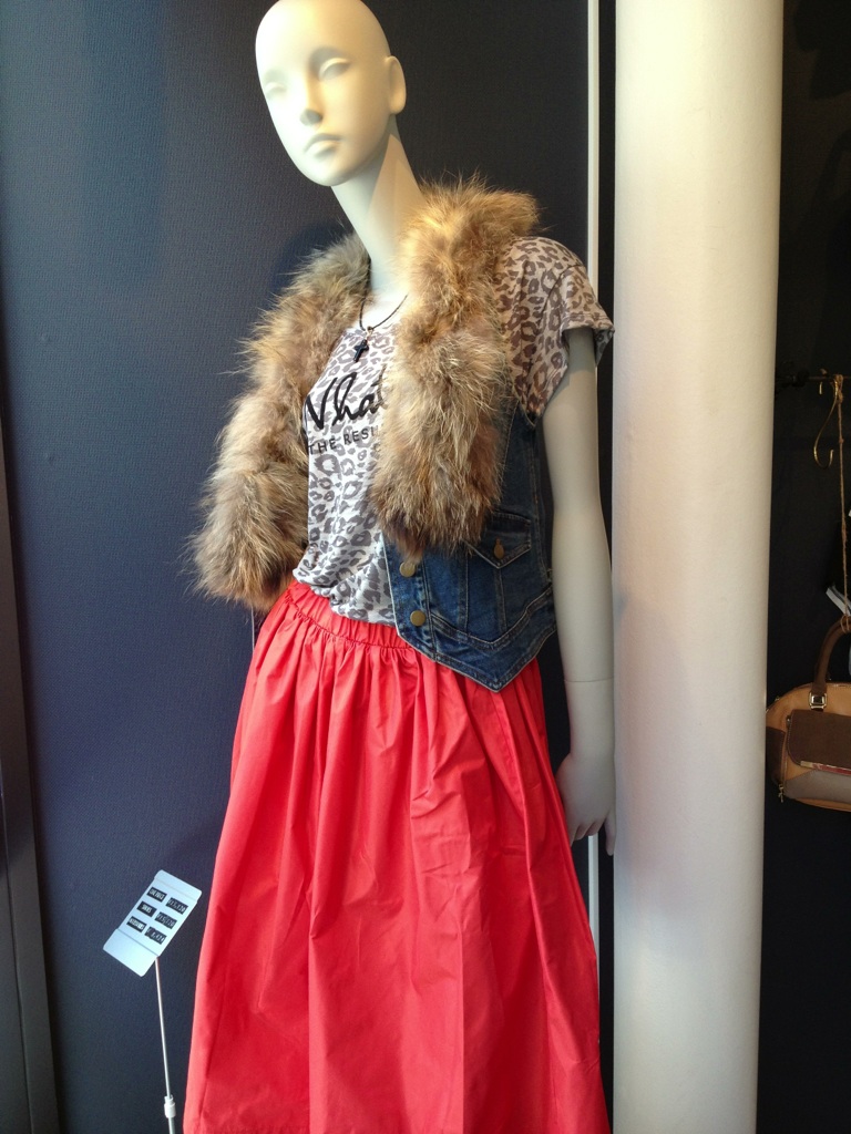 こんなクールなロングスカートを、カジュアルなTシャツでコーディネートしてみました。