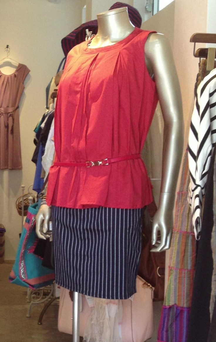 シックな赤がおしゃれなコットンブラウス、、、ノーブルレッド、という表現がピタッとはまる一品です。