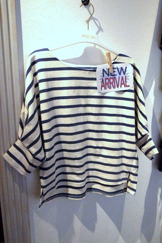 ボーダーチュニックとカットソー♪ ドルマンスリーブの可愛いチュニックとカットソーのご紹介です! 袖のデザインが他にはなかなかない着心地のよいカットソー! カラーパンツでかっこよく合わせるのがお勧めです♪ お色はブラックボーダーとネイビーボーダーの2色です チュニック ¥10,584 カットソー ¥8,532 2014年8月15日