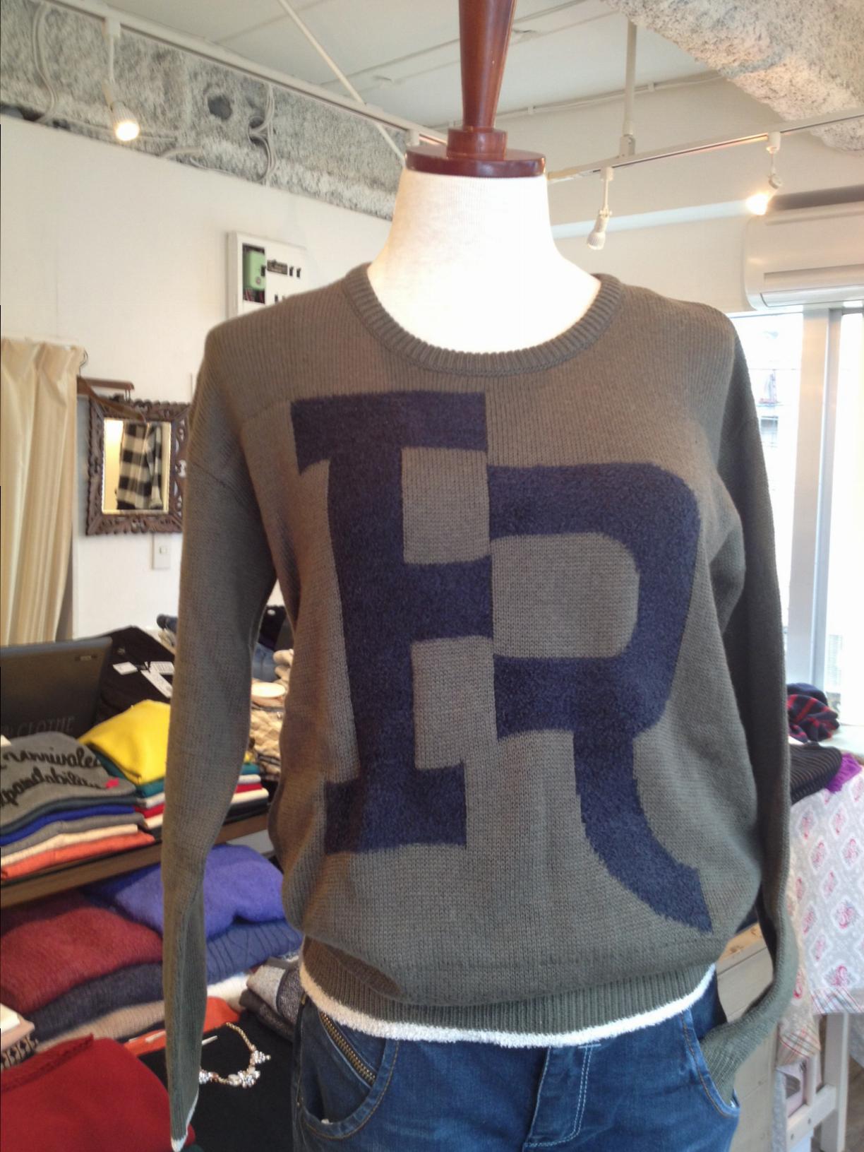 英字のデザインニット Rの文字を、縦にズラしたデザインが新鮮なニットです。 今年らしい、詰まった丸首でトレンド感もバッチリ! 軽くって肌触りも良いですよぉーっ ニット9800円 リコノクローシェ 山崎範子〓 2014年12月2日