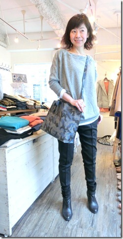 少し大きめシルエットのトップスで合わせると、着痩せ効果も抜群ですっ