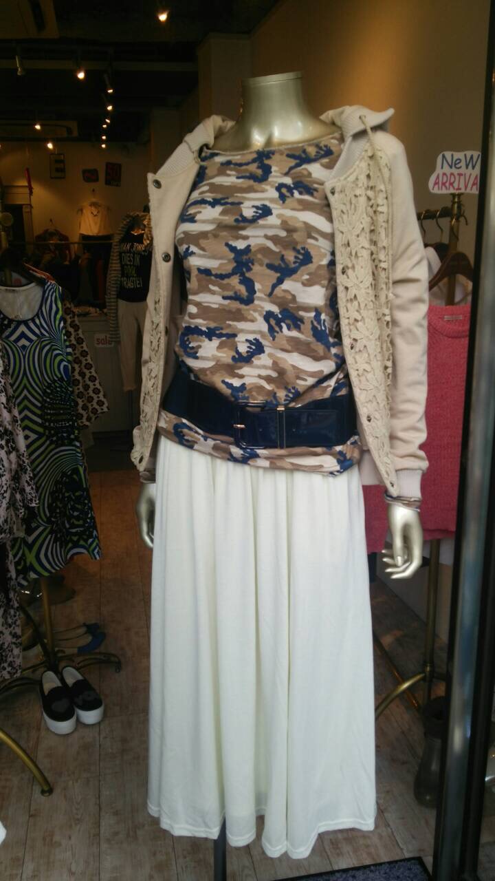 2WAYマキシスカート 3900円♡ 出ましたぁ!今回もめっちゃお得なプチプラのロングスカートーっ 紐付きでワンピースにも早変わりするこちらのアイテム! 春はやはり白いスカートが大活躍! 今期は軽量化されて、更に着やすくなりましたぁ 完売必至です。 お色違いで、グリーンやボーダー、シックなブラックなどもございます。 週末はリコノにお出かけくださいませねーっ 迷彩カットソー5500円、マキシ3900円、ベルト4900円、ブルゾン17800円 です。 山崎範子 2015年2月13日