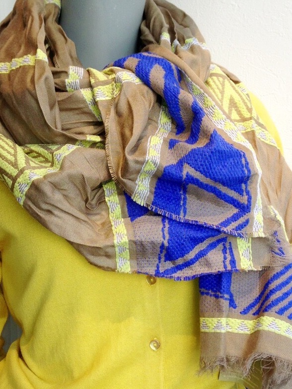 フランスインポートストール 7800円 イエロー×ブルーがヨーロッパらしい、素敵な織りのストールが入荷しております! サフランイエローのカーディガンで、爽やかなスタイリングです ストール 7800円 カーディガン 7900円 山崎範子 2015年3月12日