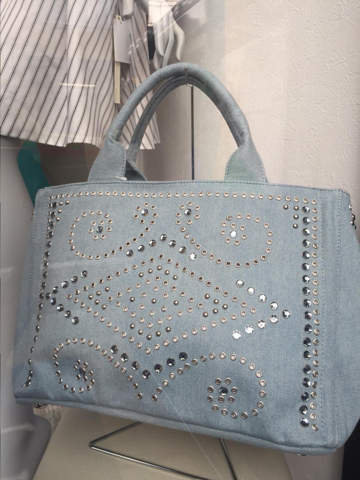 スタッズ付きのデニムトートバック♡ キラキラのスタッズがとっても素敵なデニムのトートバックが入荷しておりますーっ! 軽くてサクサク入って、仕切りもあって、とっても便利! 大きいトートの他に、小ぶりでも大容量の手提げもございます。 全て、ショルダーになる紐付きですよぉ〜💓💓💓 トートバック 14800円 2015年3月28日