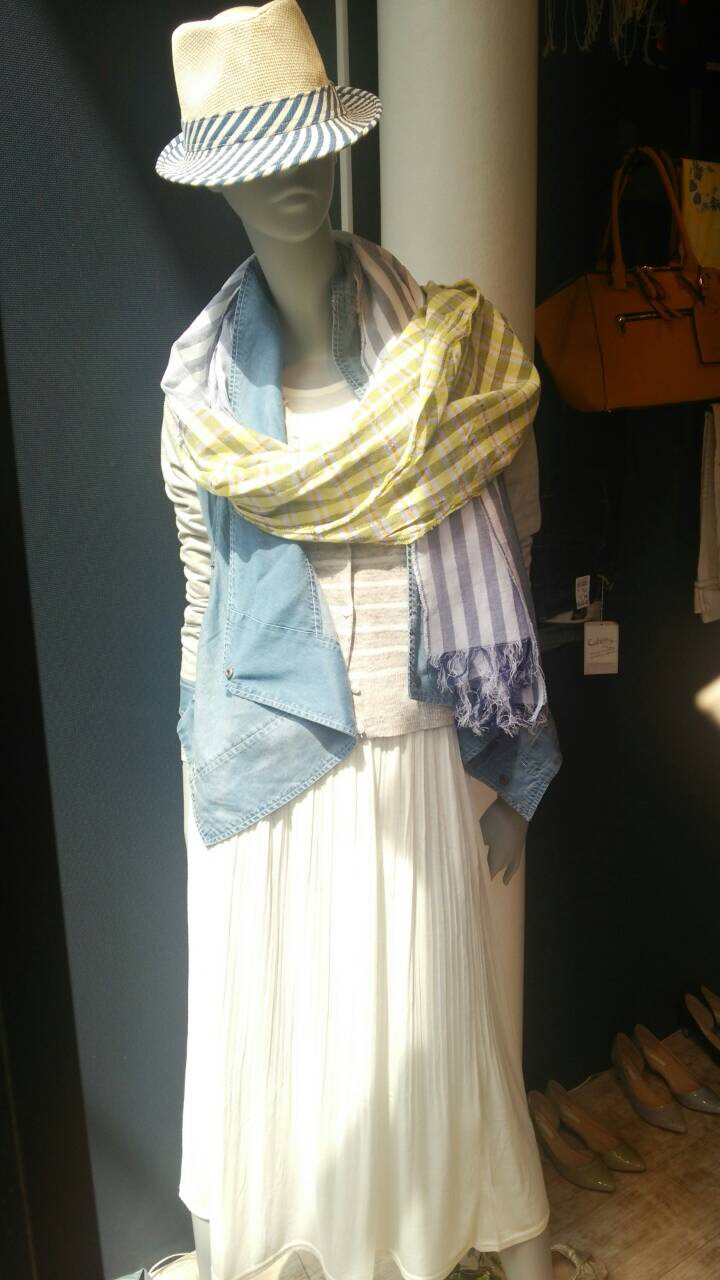 デニムのブルゾン レーヨンデニムの素敵なブルゾンが入荷して参りました。 軽〜く羽織れるので、夏でも活躍しそうですよぉ〜 ブルゾン 17800円 ワンピース 7900円 ストール 7900円 帽子 3600円 山崎範子 2015年4月16日
