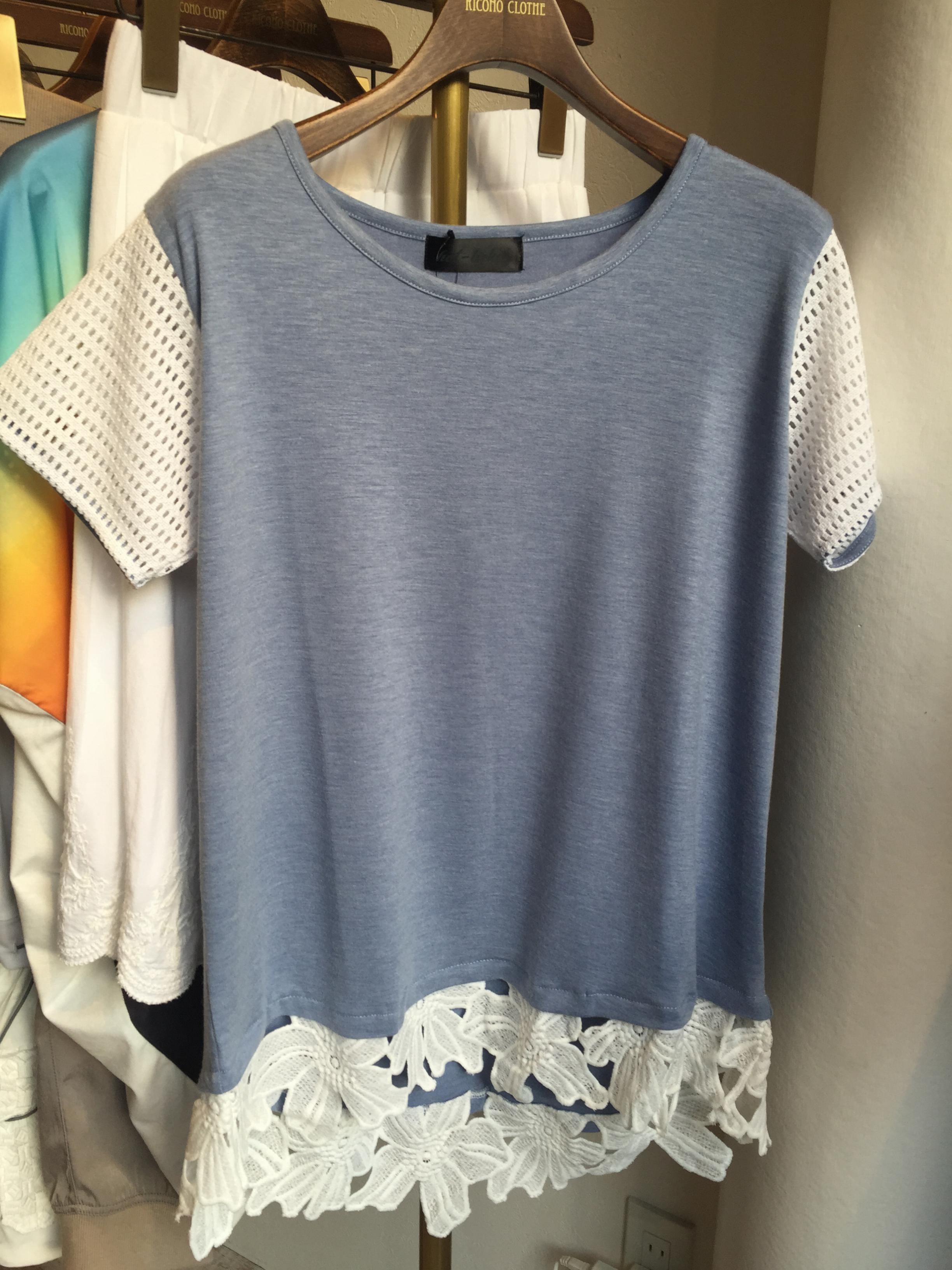 裾レースのプルオーバー 6900円 裾にレース、袖はメッシュという今年らしい一枚です デコルテの開きやヒップが隠れるデザインなので、普段の着こなしに一枚で楽チンなスタイルですよん 山崎範子 2015年5月14日