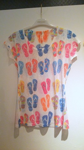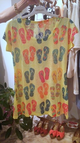 インポートTシャツ入荷しました~♪ とっても素敵なインポートTシャツ入荷して来ましたよ~! サンダル柄にビジューが付いていてキラキラッと光ります♪ ぜひ店頭にチェックしにいらして下さいね~ インポートTシャツ ¥5400 2015年5月29日