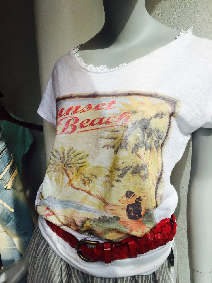インポートTシャツとフレアスカート 掠れたプリントが素敵なインポートのTシャツに爽やかなストライプスカートでコーディネートしてみました。 リコノオリジナルの赤いベルトがポイントですよぉ〜 Tシャツ 4900円 スカート 9800円 どちらも10%OFFで販売中です 山崎範子 2015年6月12日