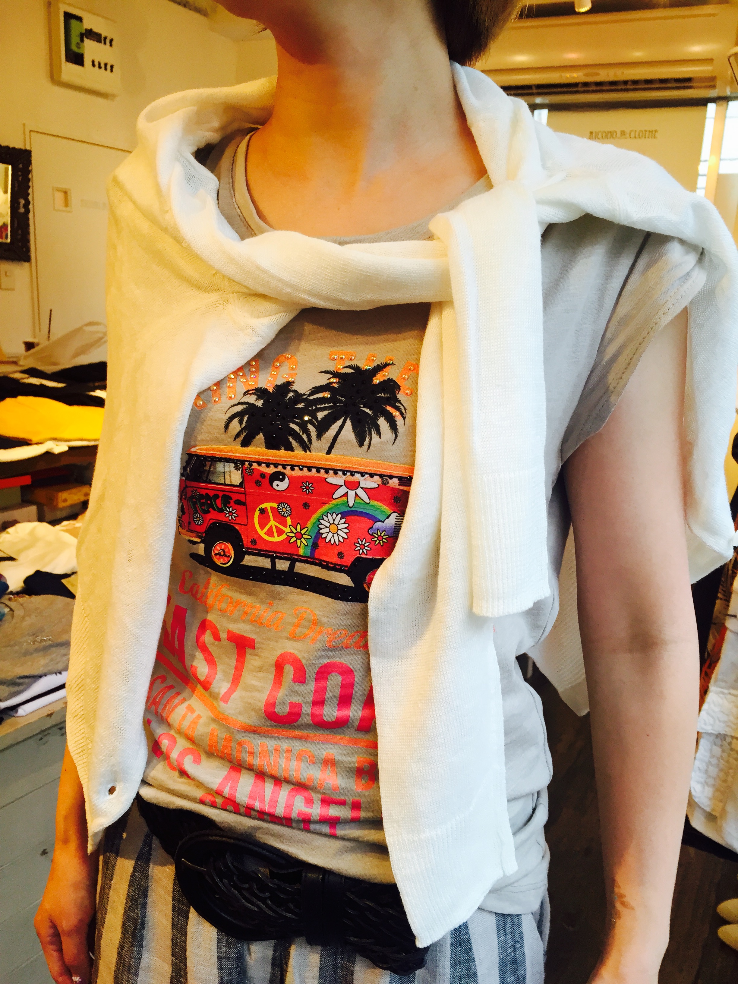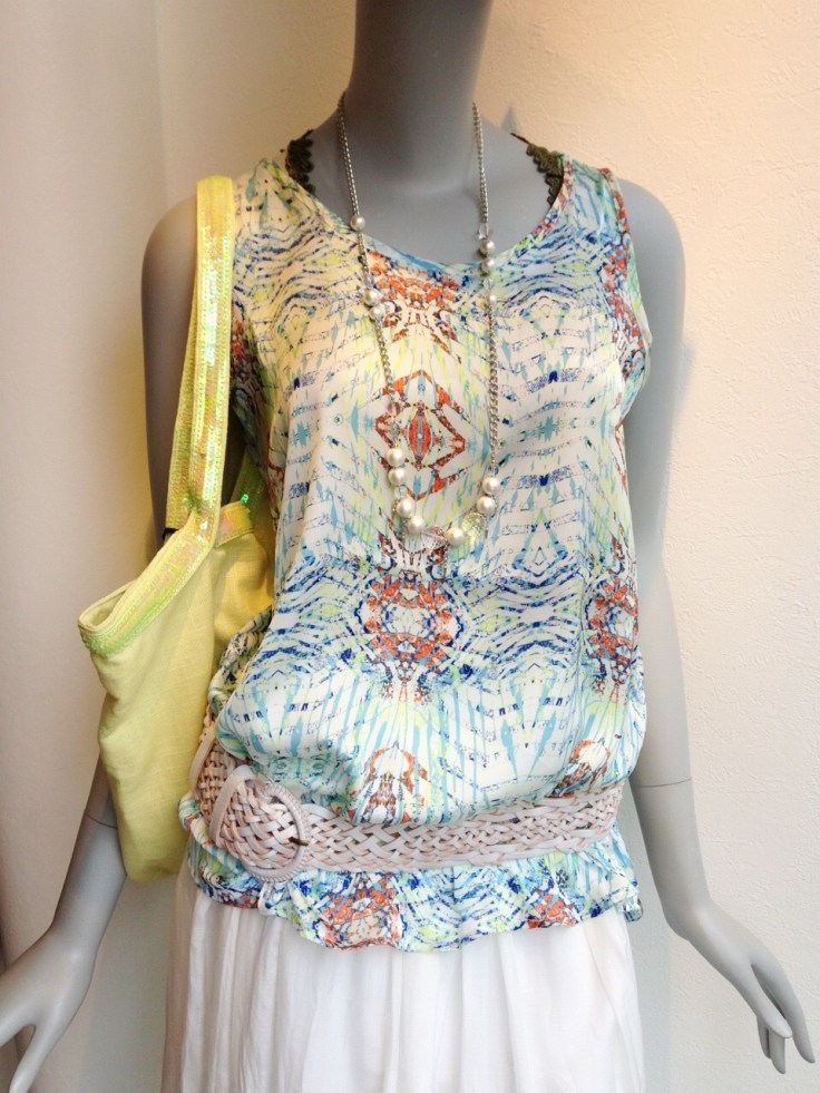 プリントタンクトップ 4200円 エスニックなプリントが可愛いタンクトップです。 デニムや麻のパンツに合わせて、ちょこっとプリントが可愛いのです グリーンやカーキ、白いカーディガンで合わせても素敵! プチプラのアイテムの投入で新鮮な着こなしをーっ ピンク系もございますよぉ〜 山崎範子 2015年7月9日