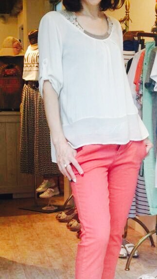 シルクシフォンのブラウス SALE 見つけて参りましたっ! 朝イチに買い付けたイタリアインポートです オリジナルのレースキャミと合わせていかがでしょうか? ベージュ×ブラックのシックなボーダーにラメのレースの使えるレースキャミです キャミは他に、ベージュ×アイボリー ピンク×アイボリーもございます ブラウス 8900円 山崎範子 2015年7月21日