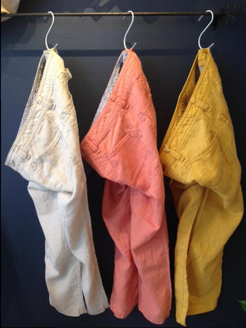麻のパンツ 麻100%の涼しいcafettyのパンツです。 キナリ、オレンジ、黄色の3色ございます。 シルエットも細すぎず、ボーイフレンドパンツのタイプで 履いた感じの後ろ姿もカッコいいですよ〜☆ SALE ¥5962 2015年8月3日
