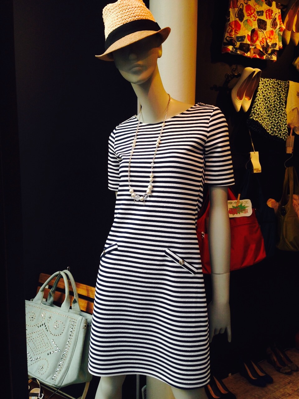 フランスインポートのボーダーワンピース フランスらしいシンプルなボーダーワンピースが入荷しました。 半袖のお袖があるから、一枚でパラっと着られるのも嬉しいーっ シンプルな分、個性的なアクセサリーも映えますよぉ〜 山崎範子 2015年8月9日
