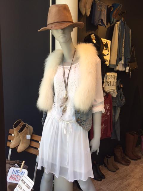 秋のウェスタン 白のチュニックワンピースに茶系の小物を合わせると秋っぽくなってオシャレが増します♪ ファーがついたゴージャスなデニムベストやGジャン、ハットやフリンジ付きバッグなどを合わせて カッコいい女性に変身してみませんか? ファー付きベスト ¥31320 ワンピース ¥24840 2015年9月11日