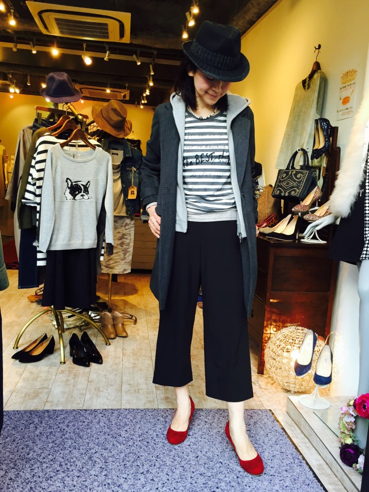 チェスターコートとパンツのコーディネート 大人気のワイドパンツ、色々と出てますねぇー ワイドパンツにコートのバランスって、なかなか難しい感じがしませんか? お写真みたいに、チェスターを合わせる時は、あまりワイドすぎないパンツを選ぶとスッキリしますよぉ〜 少しでもヒールの靴で合わせると更にGOOD 大人気のフードが外せるコートは再入荷です! プチプラなのでお早めにーっ 2wayコート 17800円 パンプス 8900円 パンツ 13000円 帽子 5900円 山崎範子 2015年9月21日