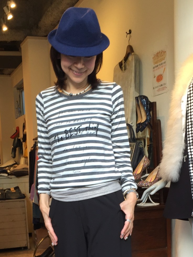 ボーダーカットソー 6900円 使えるロンTガウチョ沢山入荷して参りました。 こちらは、ボーダーと英字のデザインのミックスです。 白✖️グレーとグレー✖️黒がございます 他には無地もございますよぉ〜 山崎範子 2015年10月1日
