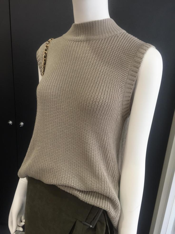 デザインニットベスト 7800円 大人気のニットベストが再入荷致しましたぁ〜っ 一枚でも良し、シャツやカットソーなどの重ね着でも良しの万能なアイテムです 黒、グレー、ベージュの3カラーで展開しております。 山崎範子 2015年10月5日