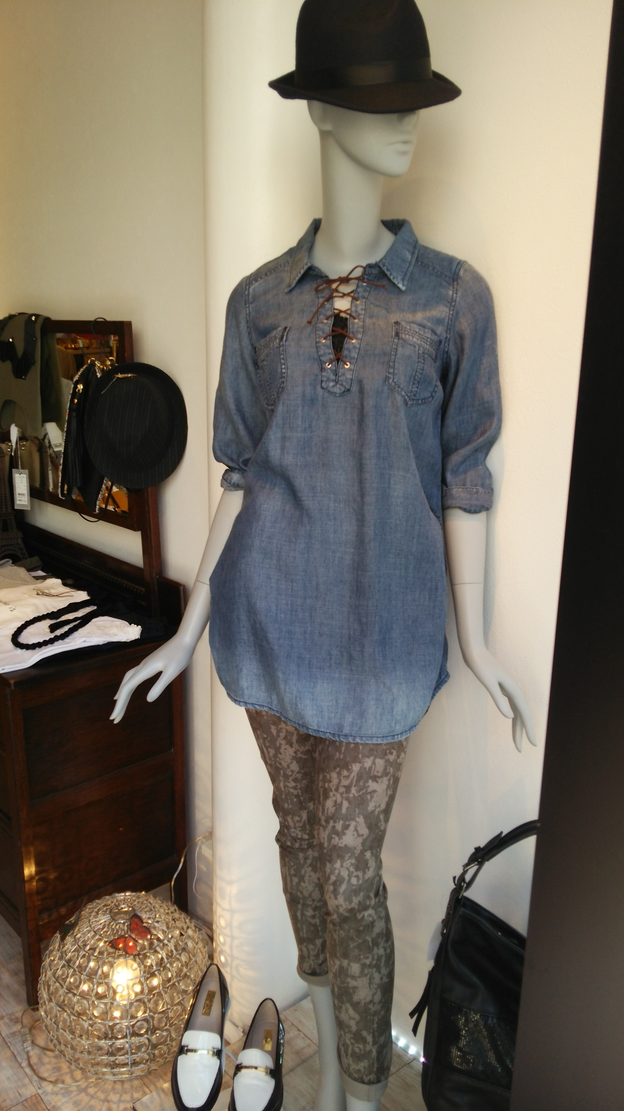 デニムのチュニックと迷彩パンツ めちゃくちゃ履きやすいパンツとさらりと着れるデニムのチュニックのご紹介です♪ ガウチョもいいけど、スキニーもまだまだ人気です! スッキリ見えるので美脚効果バッチリですよ~(^^) デニムチュニック 14904円 パンツ 13824円 2015年10月7日