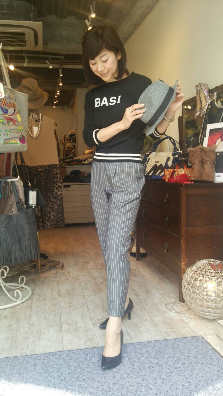 ピンストのテーパードパンツ グレー カッコ良くて、使えるテーパードパンツが人気急上昇です ガウチョやワイドも買ったけど、やっぱり定番のすっきりパンツはお役立ちーっ こちらは優れた素材感で、シワになりにくく、毛羽立ちも無く、いつでも新品みたいにお使い頂けます。 ヒップからの落ち感もあり、下半身をすっきり細く見せてくれる優秀な一品! 春まで大活躍しますよぉ〜 ニット 8900円 パンツ 13800円 山崎範子 2015年10月9日